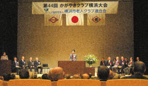 第2部の式典では、横浜市長の挨拶があり、長年にわたり老人クラブの運営・発展に貢献された方々へ横浜市長表彰、横浜市老人クラブ連合会理事長表彰等を行いました。その後、受賞者を代表して桑原正盈様から、来賓を代表して福島直子横浜市会副議長、網代宗四郎 横浜市町内会連合会会長及び古都賢一全国老人クラブ連合会副会長からご挨拶をいただき、湯瀨洋子横浜市老人クラブ連合会副理事長の挨拶をもって閉会しました。