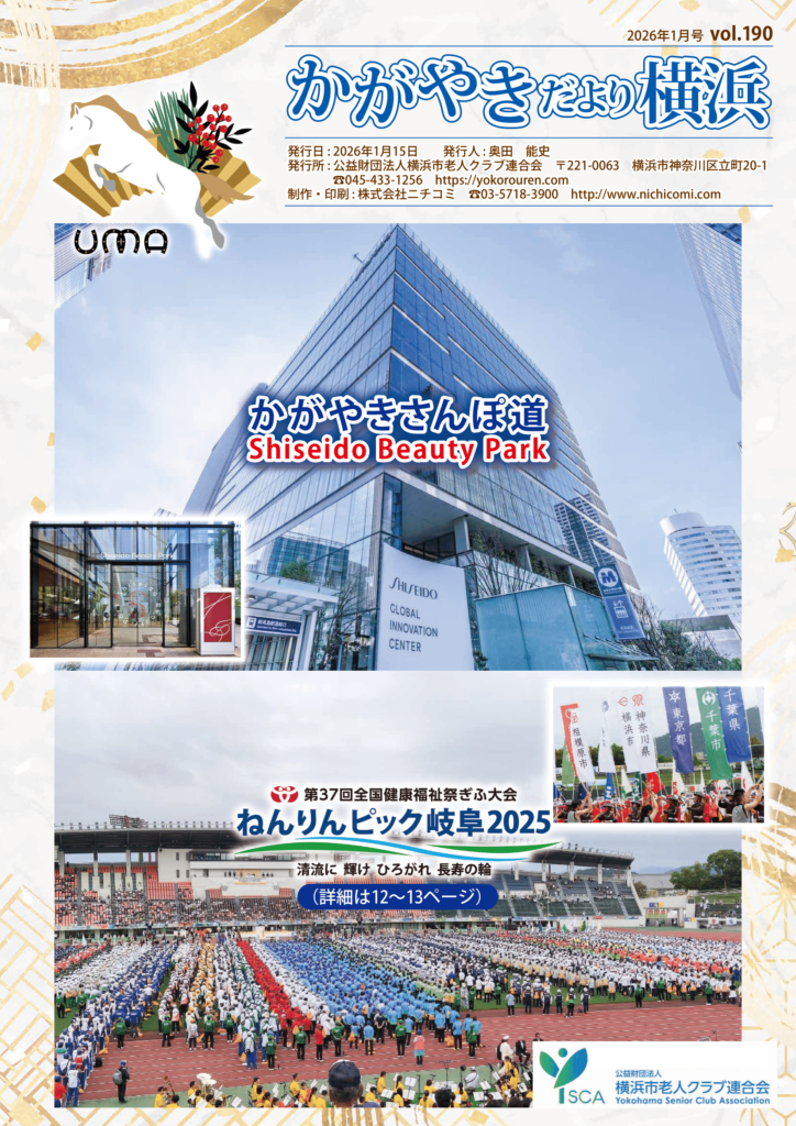 横浜市老人クラブ連合会では、機関紙「かがやきだより横浜」を年3回(4月、10月、1月の原則として15日)発行しています。機関紙編集委員会の委員により作成され、会員の皆様には単位クラブの会長さんを通して、ご自宅にお届けしています。また、横浜市内の図書館、地区センター、老人福祉センター、区役所等でもご覧になることができます。